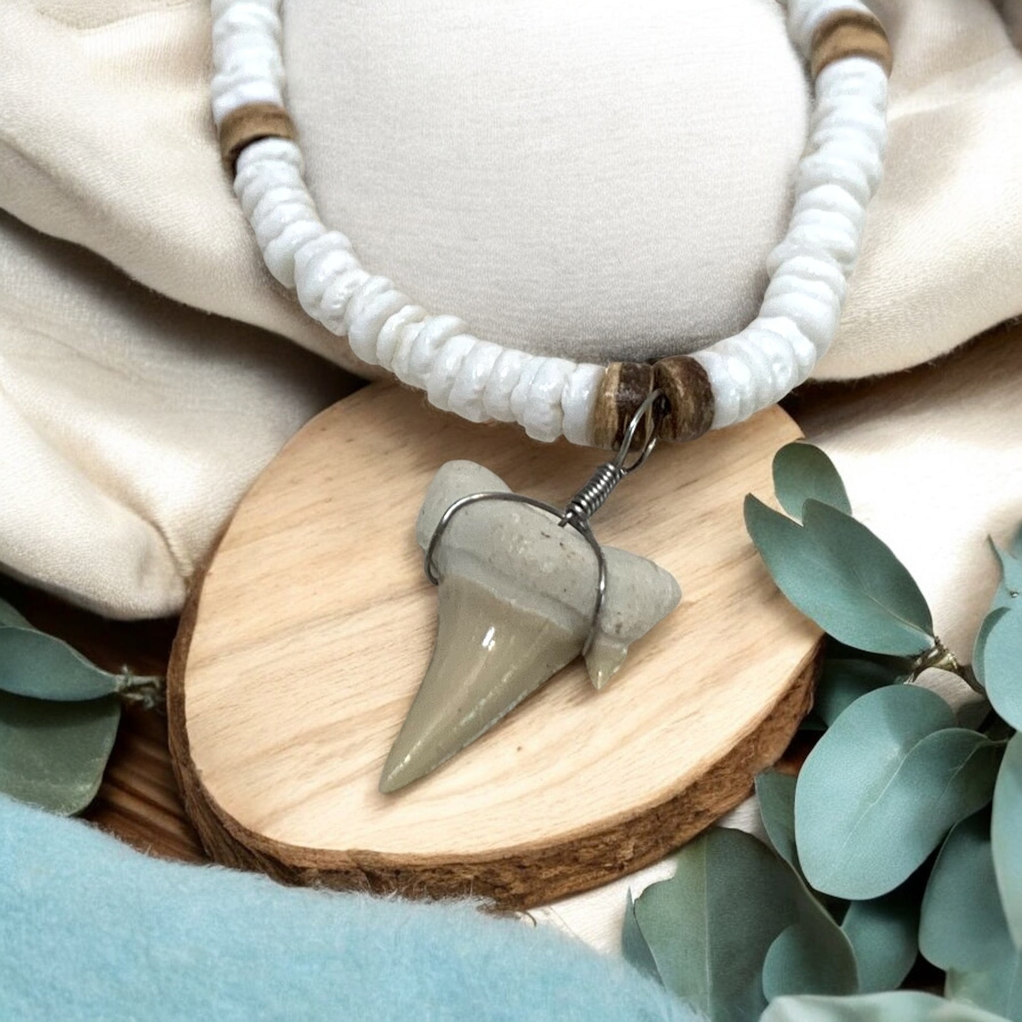 Made with natural litub shell beads and a striking shark tooth pendant, this unisex necklace blends primitive style with beachy soul. Worn long or short, it’s a bold accessory for surfers, ocean lovers, or anyone drawn to the wild.